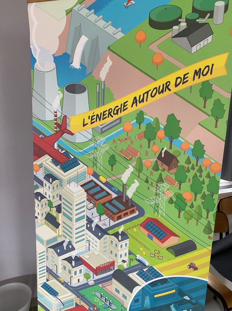 Le vendredi 12 mars après-midi, nous avons participé à une animation sur l’énergie dans la garderie de l’école. Une intervenante de l’association SIEL a installé de grands panneaux sur l’énergie. Par petits groupes, nous avons mené l’enquête pour répondre à plusieurs questions.