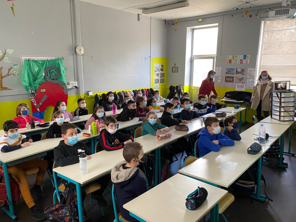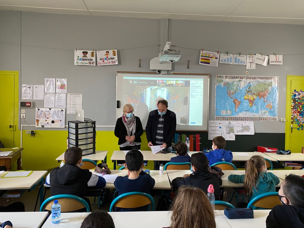 Le vendredi 19 mars après midi. Des bénévoles de l’association sont venus à l’école pour nous présenter les restos du cœur et pour répondre aux questions des élèves. Lors de cette intervention les autres écoles participantes de la vallée du Gier étaient présentes par visio.