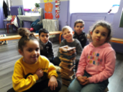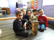 Nous avons fêté ce jour en cherchant 100 mots contenant le son [f], en cherchant des opérations dont le résultat était 100… L’après midi, nous avons fais des ateliers, autour du nombre 100, avec les grandes sections et nous avons construis des tours avec 100 kaplas