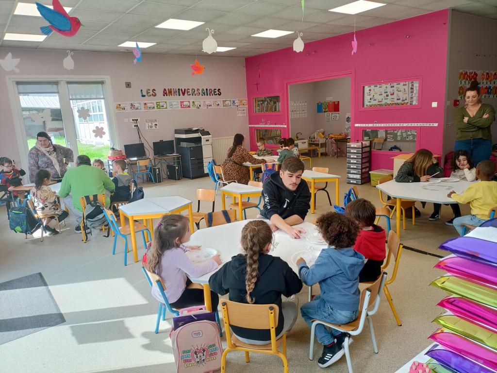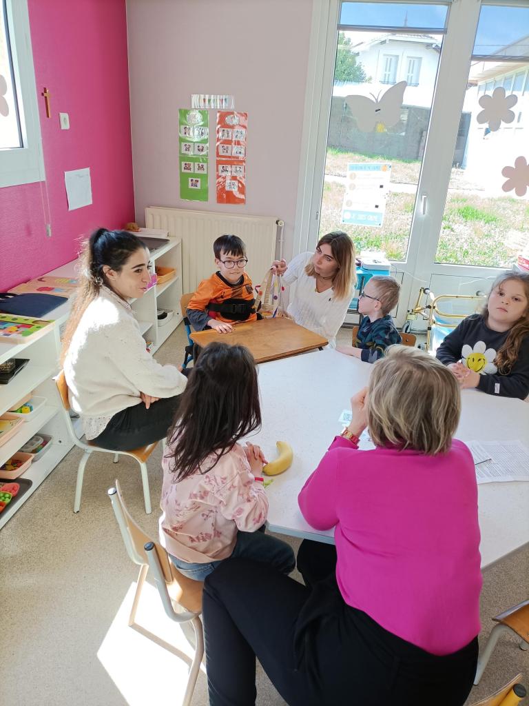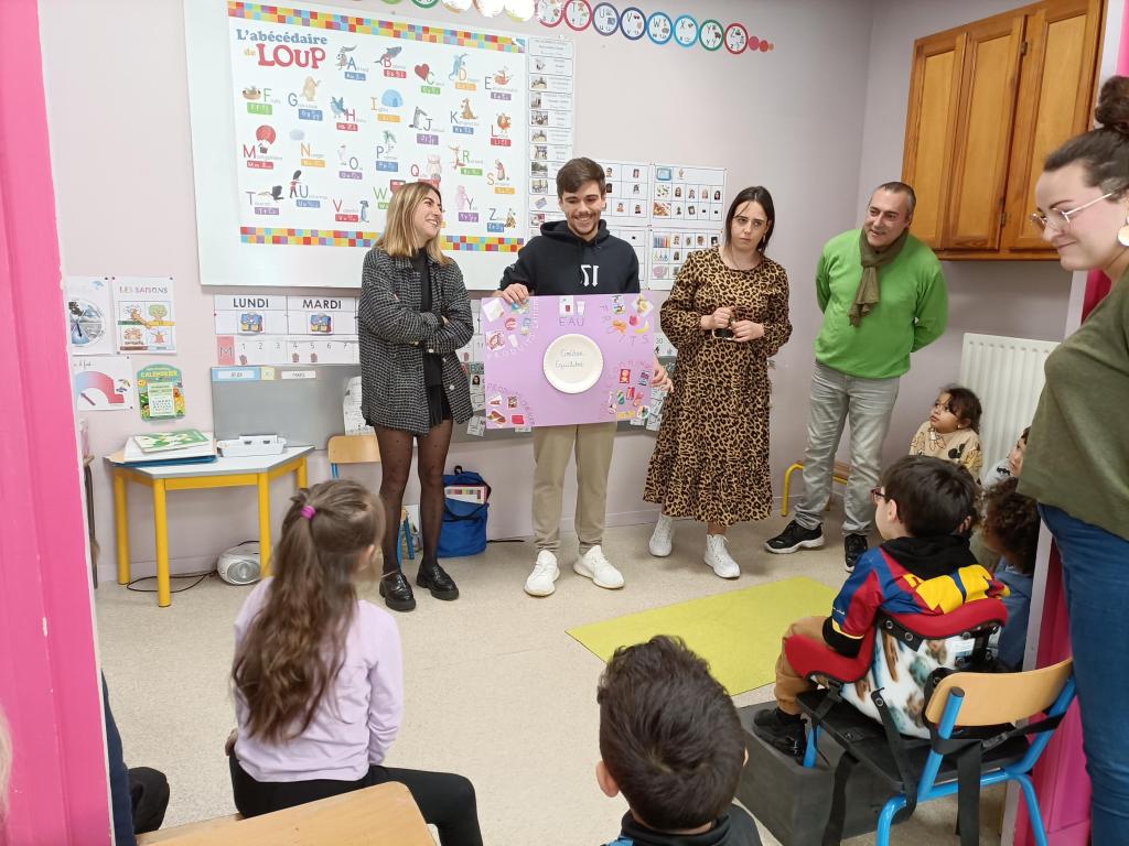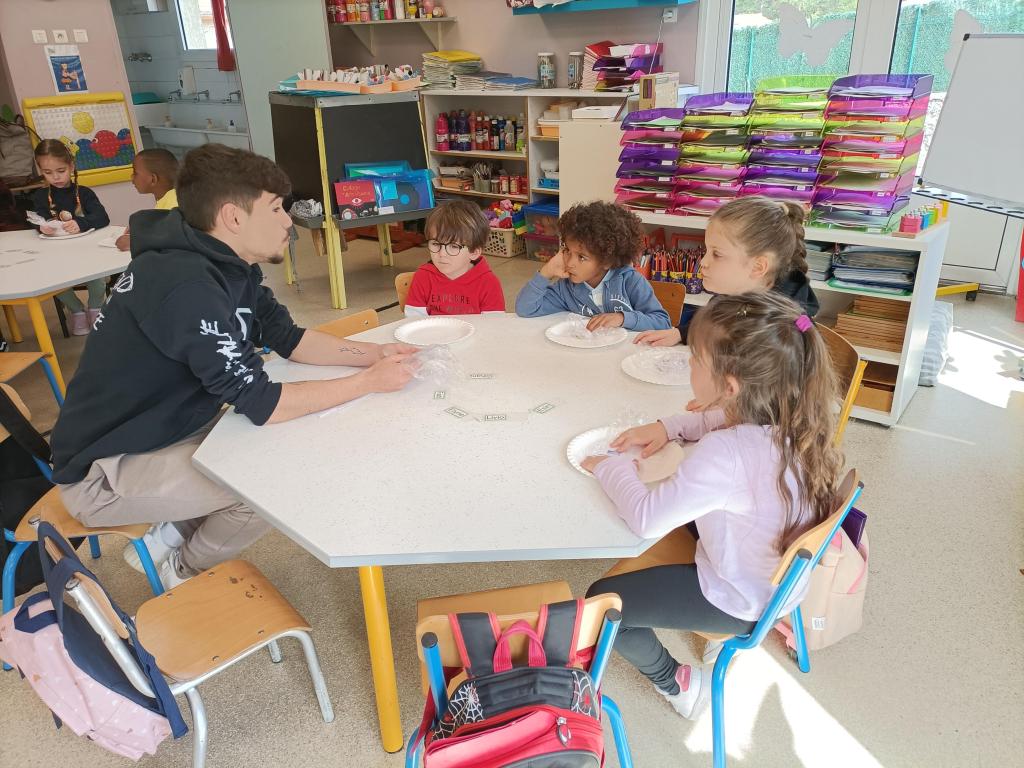 Quatre étudiants infirmiers du service sanitaire ont effectué des interventions dans notre classe auprès des élèves de MS. Le thème était « Le sucre et ses dangers ».