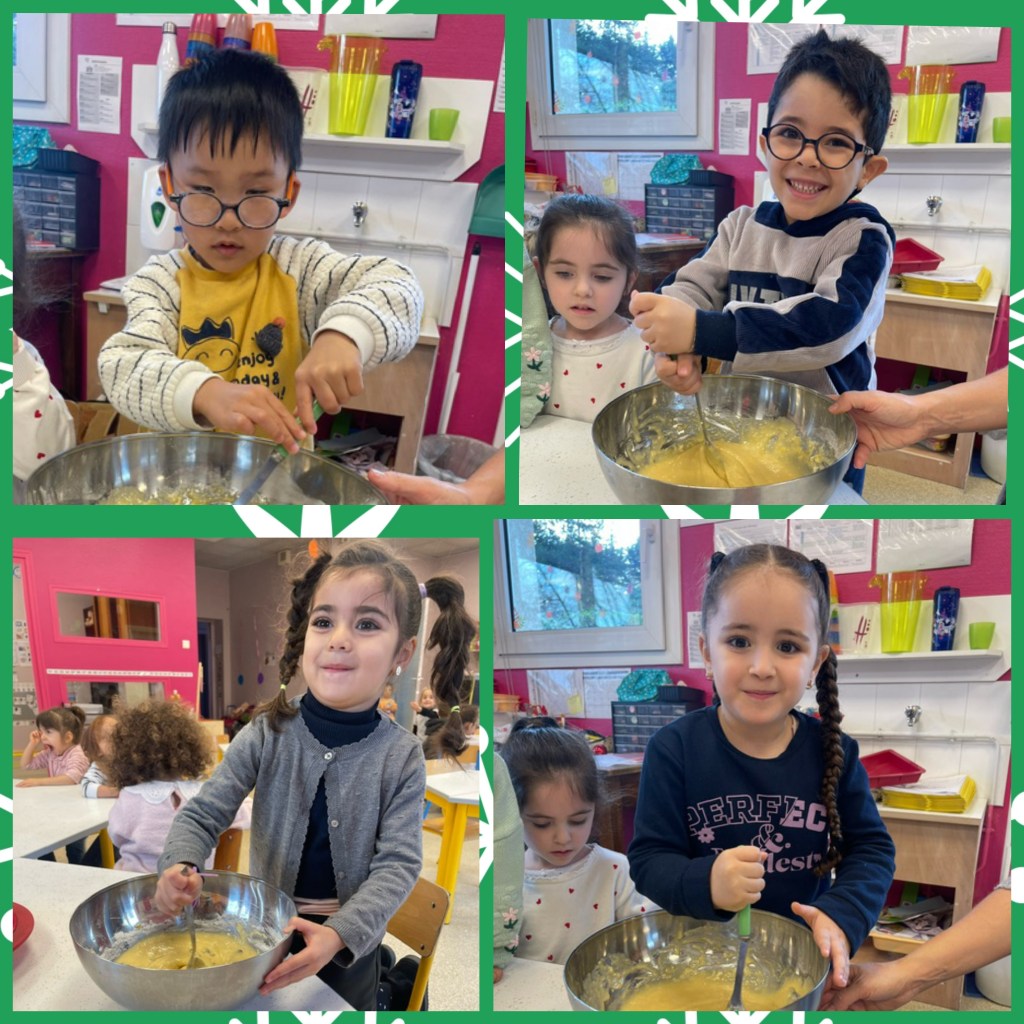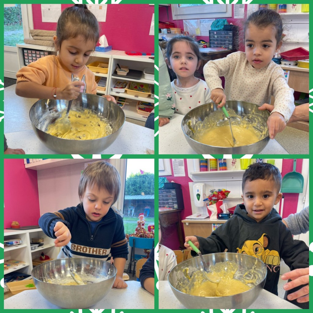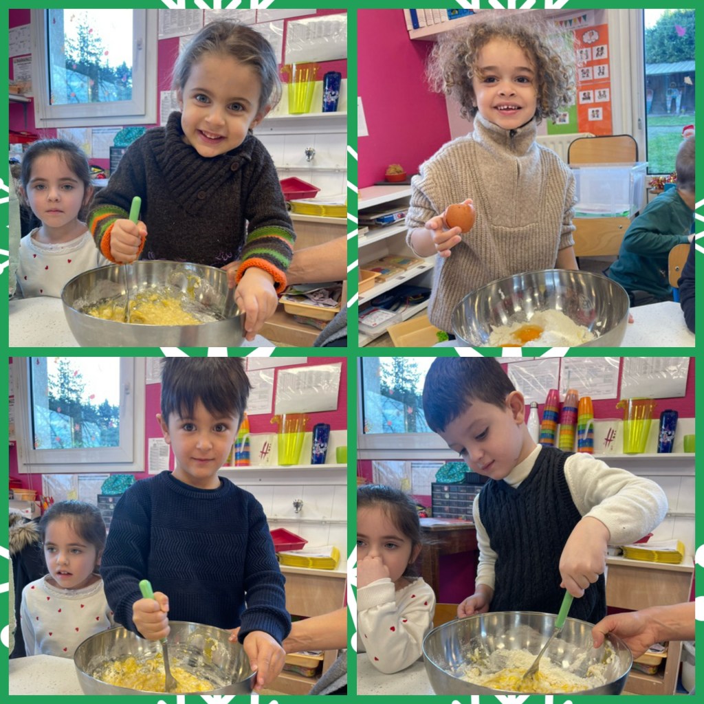 Le vendredi 15 décembre matin, nous avons cuisiné en classe pour les anniversaires d’Inès, de Théo et d’Aliya.