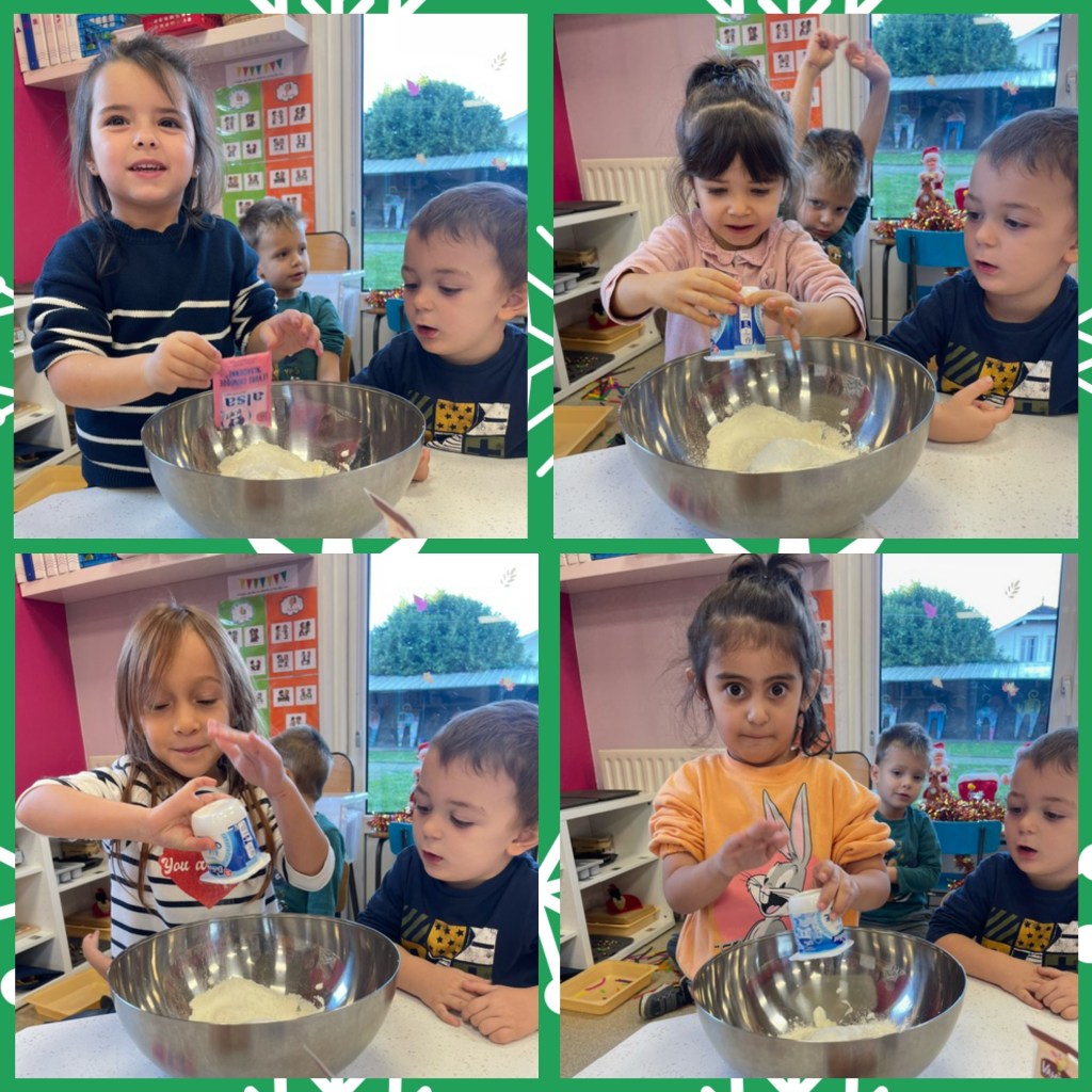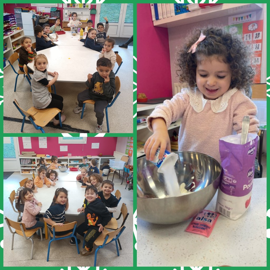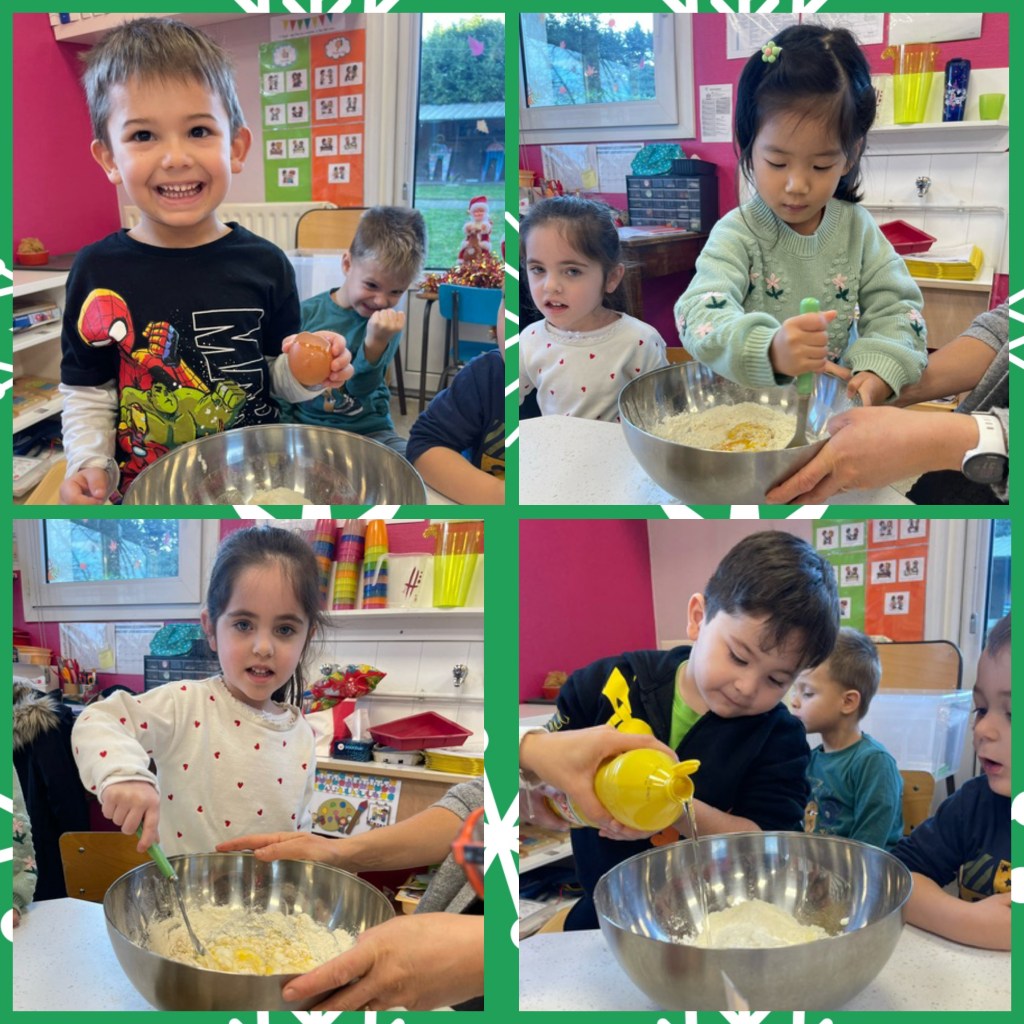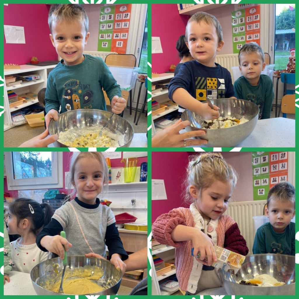 Le vendredi 15 décembre matin, nous avons cuisiné en classe pour les anniversaires d’Inès, de Théo et d’Aliya.