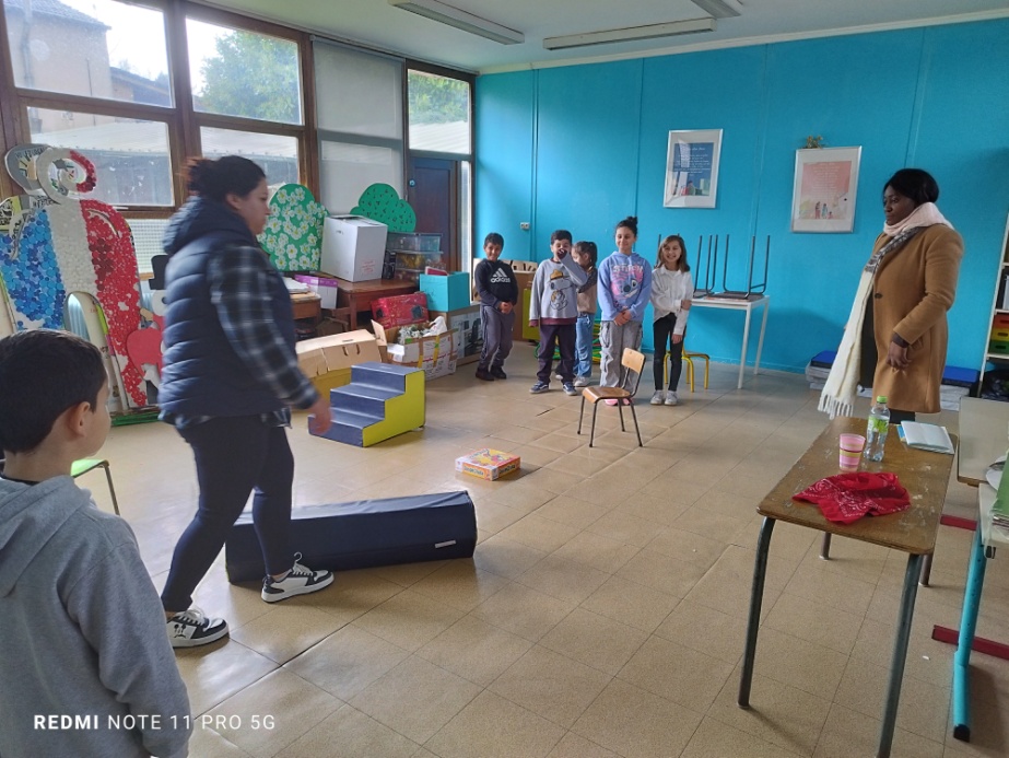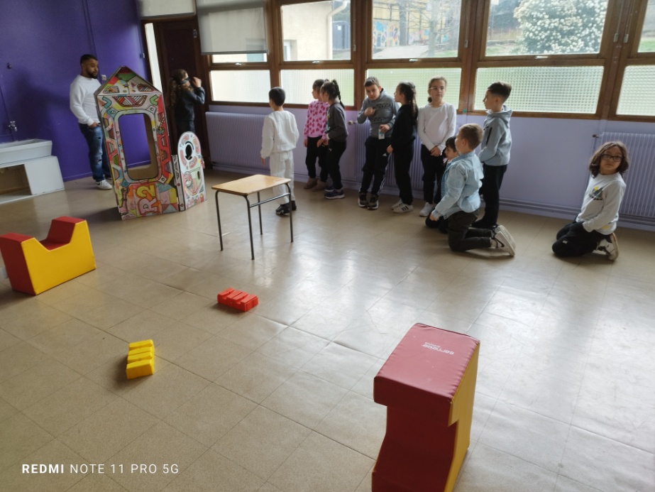 Pour la deuxième activité on devait faire un parcours les yeux bandés en étant guidé par un copain. On a vu qu’il était difficile de faire confiance aux gens. Il est également difficile de guider avec des mots. On s’est aperçu il fallait proposer de l’aide mais ne pas l’obliger.