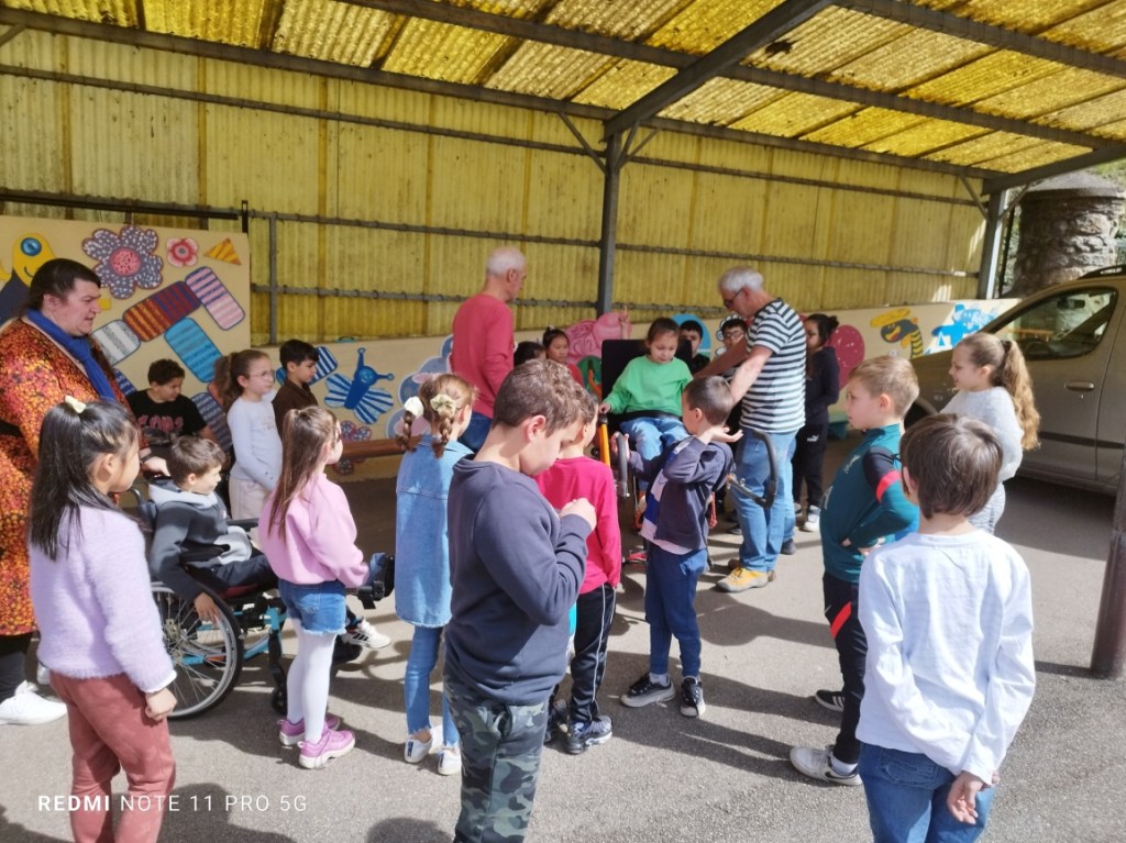 Les enfants ont pu visionner différentes vidéos de ces sorties et ont vu et essayer une joëlette.